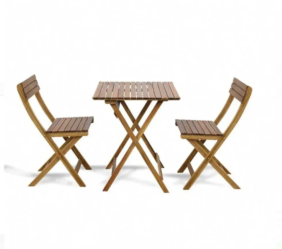 Akasya ağacı olarak üretilen katlanabilir bahçe ve balkon oturma seti ahşap yapısı ile doğal ve şık bir görünüm sağlamaktadır.