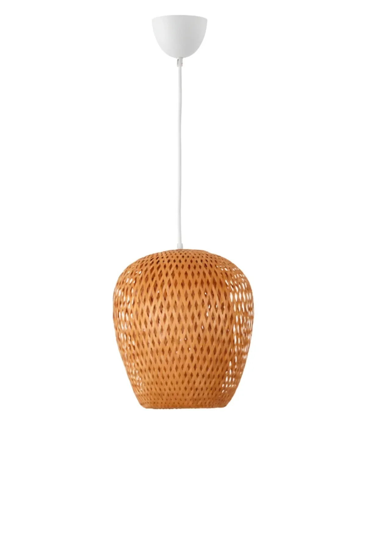 Boja Pendant Bambu Avize Çap: 25 cm Yükseklik: 25 cm Suya ve dış etkilere karşı oldukça dayanıklı olan bambu özellikle ev içi mobilyaları, bahçe mobilyaları ve aksesuarlarının yapımında kullanılırlar